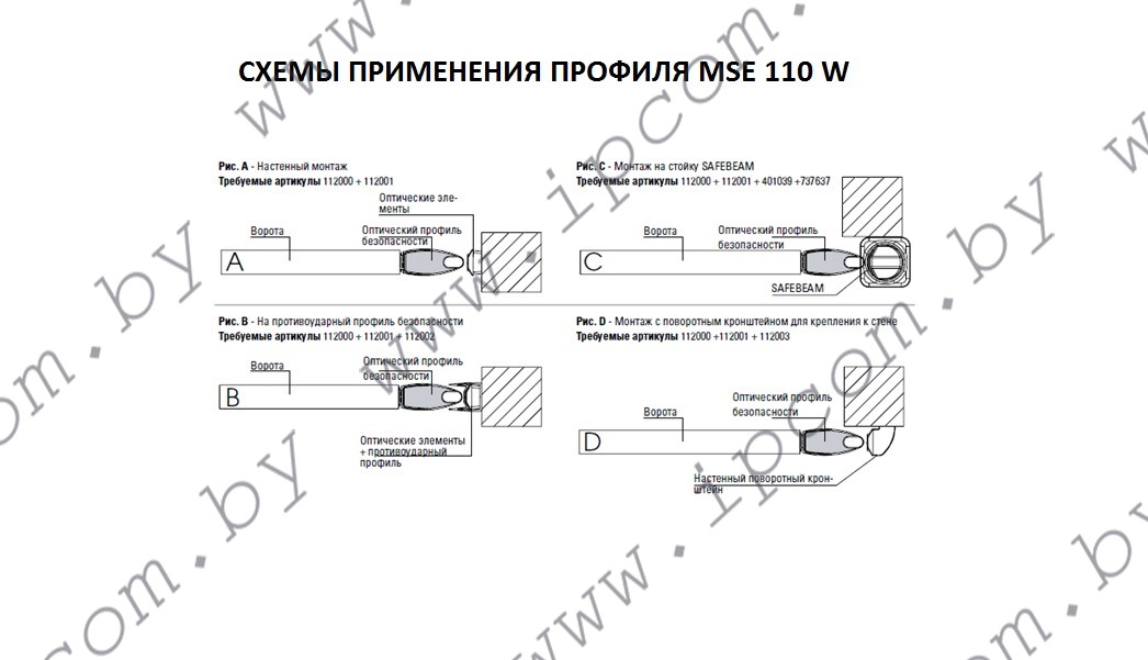 Для установки профиля безопасности MSE 110 W необходимы арт. 112000 (1 шт.) и арт. 112001 (1 шт.).