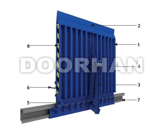 Поверхность откидного моста представляет собой стальной лист толщиной 5 мм с чечевичным рифлением высотой 0,5-1,5 мм и рассчитана на взаимодействие с ручными гидравлическими тележками и стандартными 4-х колесными погрузчиками с надувными шинами. По желанию заказчика мост может быть изготовлен с расчетом на использование с оборудованием, которое имеет высокую точечную нагрузку, таким как электрический штабелер. Возможна небольшая потенциальная деформация поверхности моста, что не отражается на работе изделия. Аппарель изготавливается из стального листа толщиной 12 мм с чечевичным рифлением высотой 1,2-3,6 мм. Балки моста изготавливаются из трубы размером 60х40х3 мм. Мост имеет рычажную систему балансировки, основанную на 2-х пружинах и роликовой опоре. Направляющий рельс выполнен на базе горячекатаного швеллера размером 160 мм.