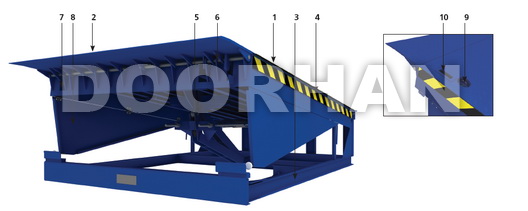 Поверхность уравнительной платформы представляет собой стальной лист толщиной 5 мм с чечевичным рифлением высотой 0,5-1,5 мм (согласно ГОСТ 8568-77) и рассчитана на взаимодействие со стандартным 4-х колесным погрузчиком с надувными шинами. Возможна небольшая потенциальная деформация поверхности платформы, что не отражается на работе изделия. Аппарель изготавливается из стального листа толщиной 12 мм с чечевичным рифлением высотой 1,2-3,6 мм. Продольные балки могут быть выполнены из двутавра 100 мм или Г-образного профиля размером 140x40x4 мм, ферма – из швеллера 100 мм.