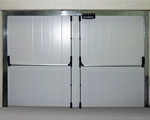 В полотно ворот может быть установлена противопожарная дверь, которая оснащена петлей с пружинным доводчиком. Она имеет те же свойства, отвечает тем же требованиям и окрашивается в тот же цвет, что и противопожарные ворота (стандартный размер двери – 990х2050 мм, порога – 115 мм).