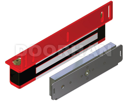 Электромагнит предназначен для удержания ворот в открытом положении (без установки электропривода). В момент поступления сигнала с пульта системы пожарной безопасности, электромагнит размыкается и ворота скатываются, закрывая проем.