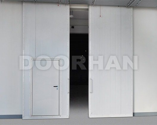 В полотно ворот может быть установлена противопожарная дверь, которая оснащена петлей с пружинным доводчиком. Она имеет те же свойства, отвечает тем же требованиям и окрашивается в тот же цвет, что и противопожарные ворота (стандартный размер двери – 990х2050 мм, порога – 115 мм).