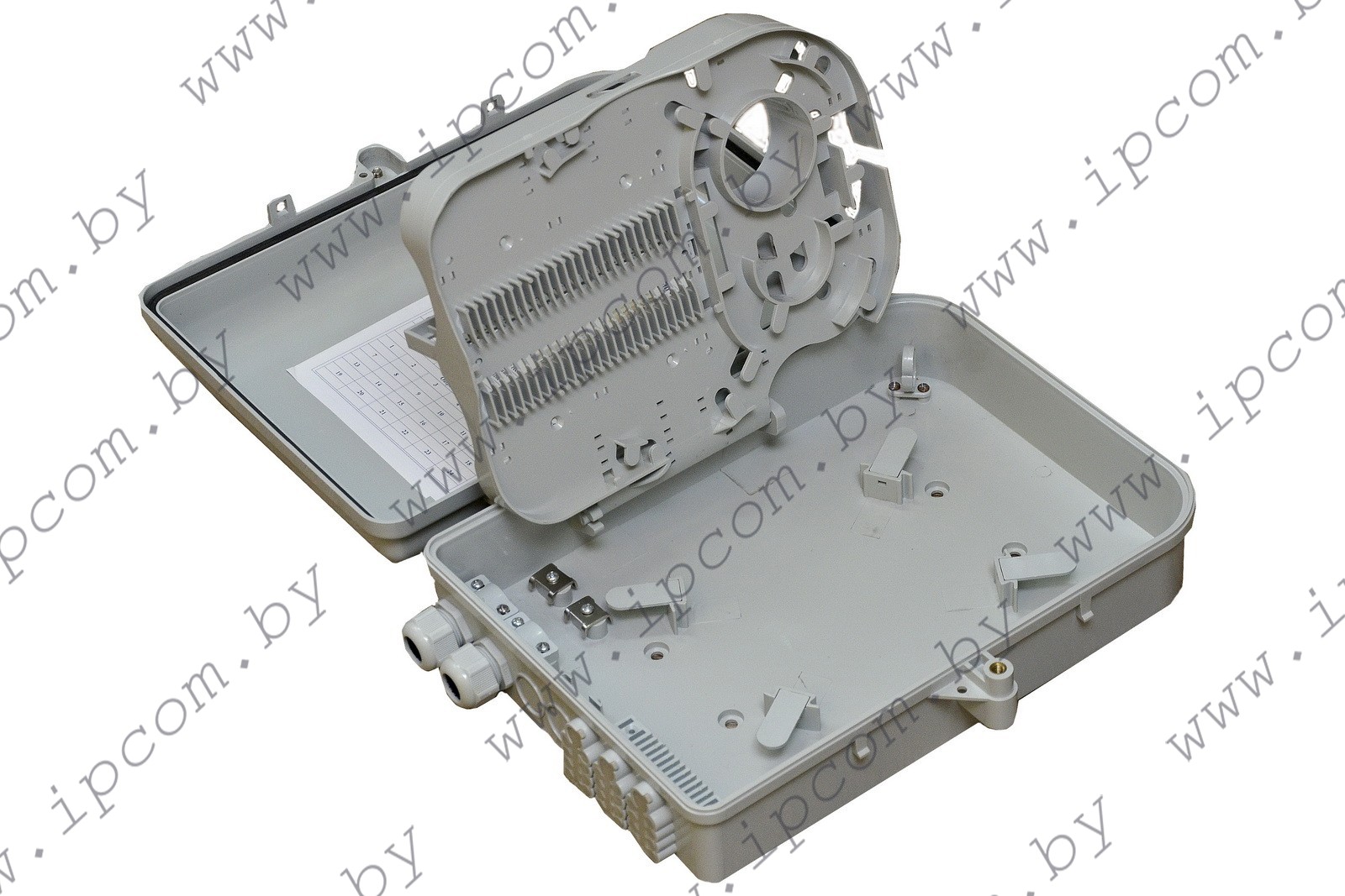 Оптическая распределительная коробка ОРК(А)-224 А(IPC) предназначена для использования в качестве распределительного бокса в сетях PON.