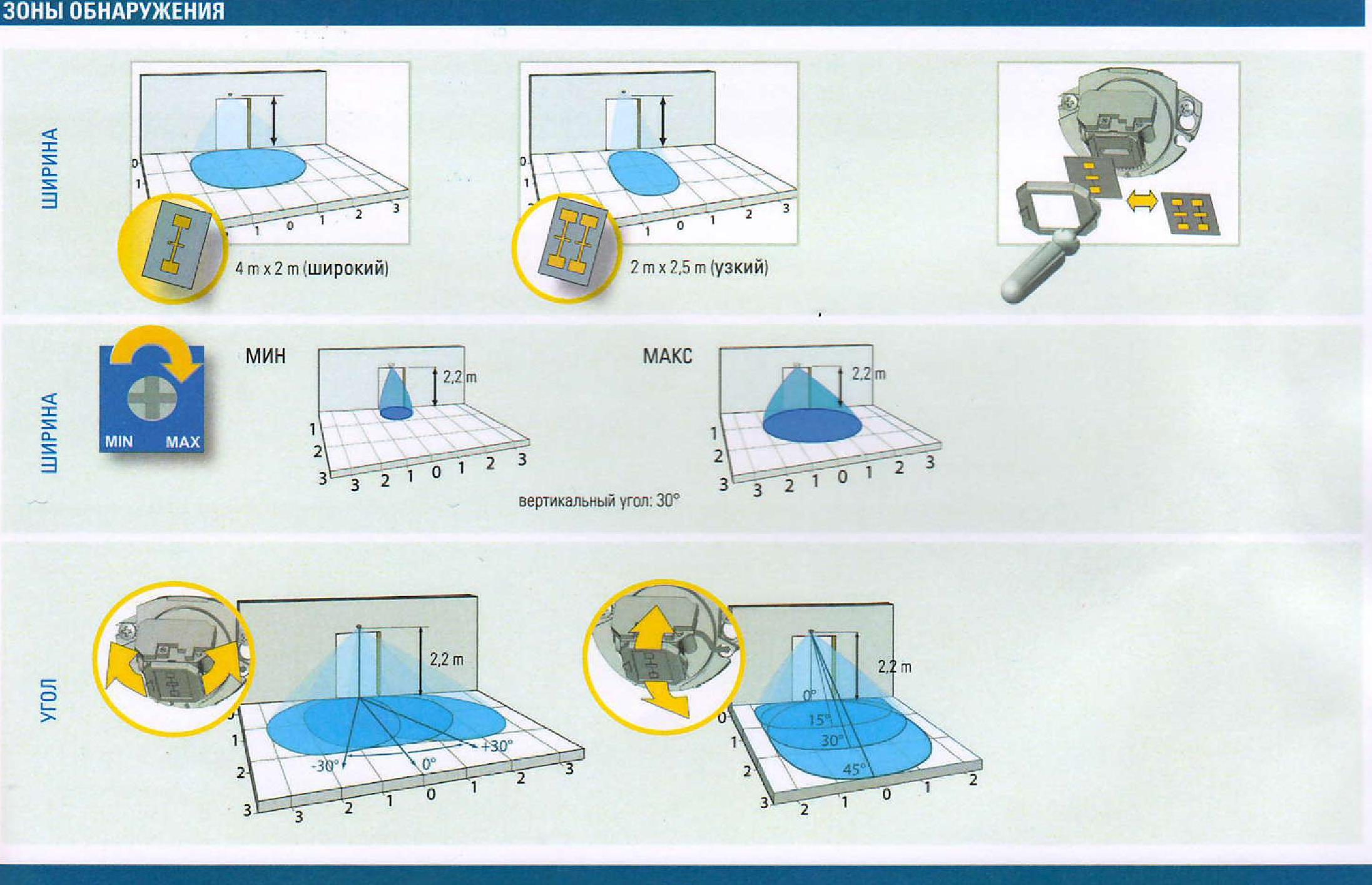 Зона обнаружения (высота установки=2,2 м) |
