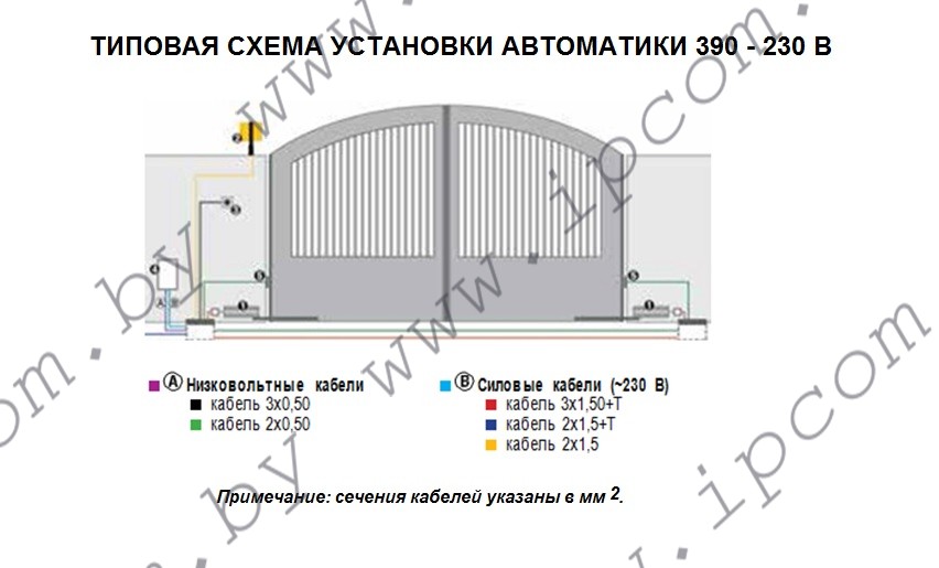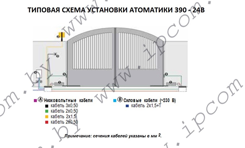 ВНИМАНИЕ: приводы 390 и 390 24 В должны быть оборудованы шарнирным (для распашных ворот) или телескопическим (для складывающихся ворот) рычагом.