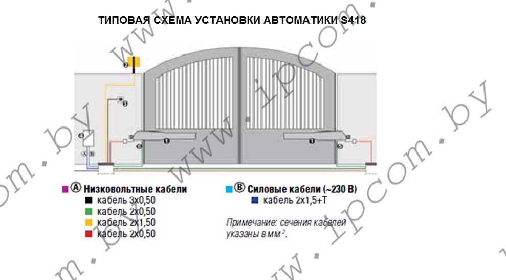 (*) Если ширина створки превышает 2,30 м, обязательно установить электрозамок, чтобы гарантировать фиксацию ворот в крайних положениях.