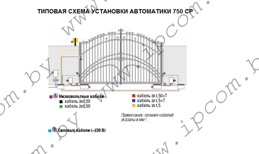 Комплектация гидростанций 750: гидравлический замок, фиксирующий ворота в открытом/закрытом положении (750 CBAC), без гидравлического замка (750 SB), пусковой конденсатор 8 мкФ 400 В.