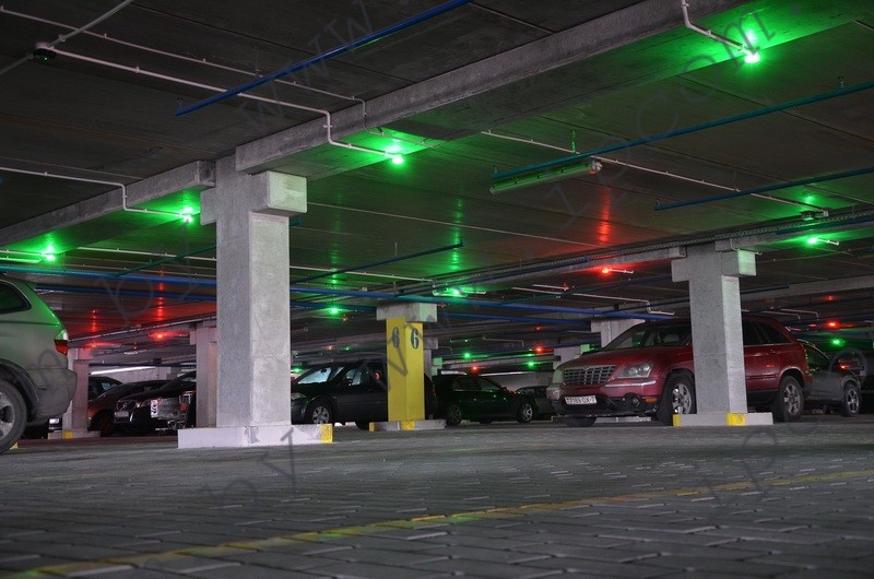 - светодиодные индикаторы, работающие по принципу «свободно-занято»: парковка занята – зажигается красный; зеленая лампочка индикатора означает, что место свободно, синий – место зарезервировано для инвалидов. Индикаторы расположены над каждым парковочным местом.