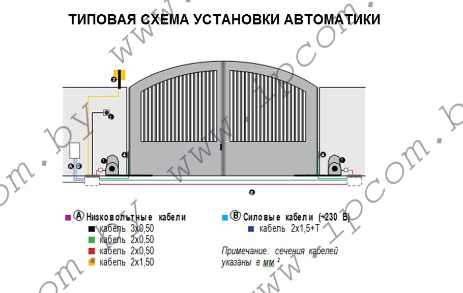 * При автоматизации створок шириной более 2 м необходимо установить электрозамок.
