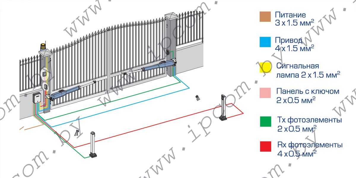 - При отсутствии напряжения питания защищенная ключом система разблокировки обеспечивает перемещение створок ворот вручную.
