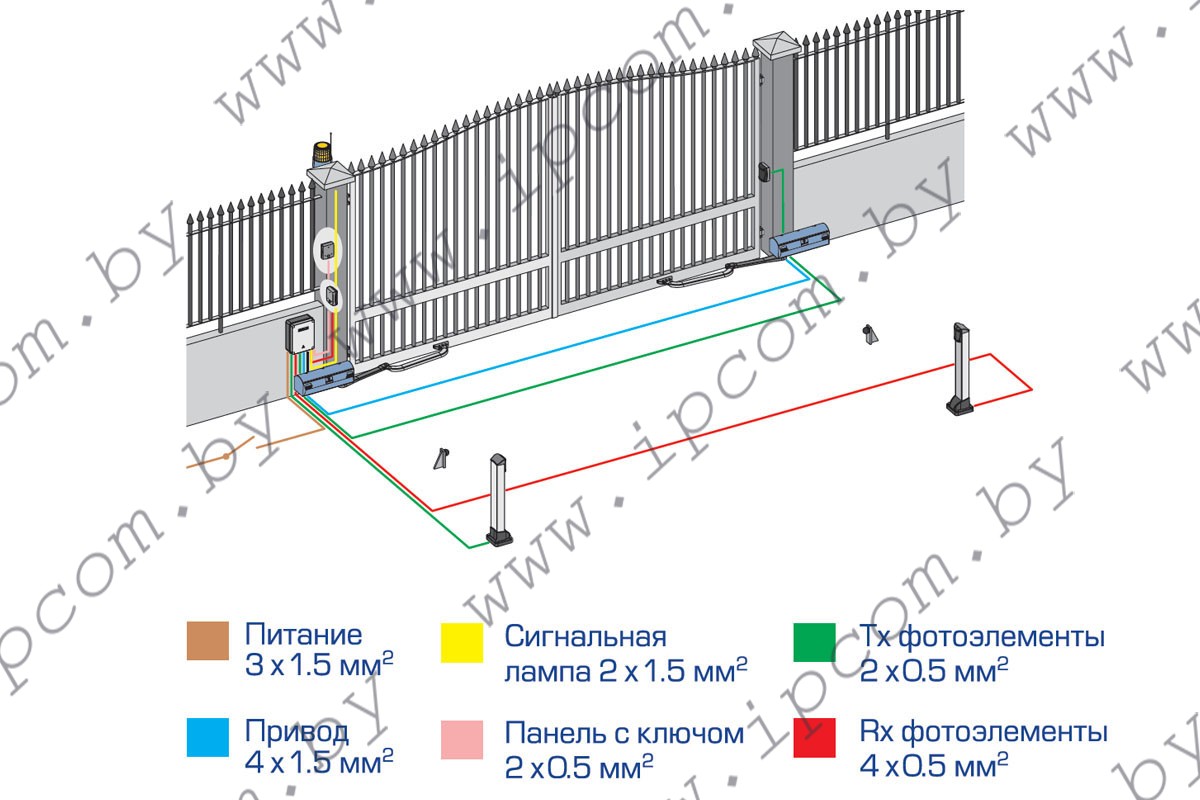 - При отсутствии напряжения питания защищенная ключом система разблокировки обеспечивает перемещение створок ворот вручную.