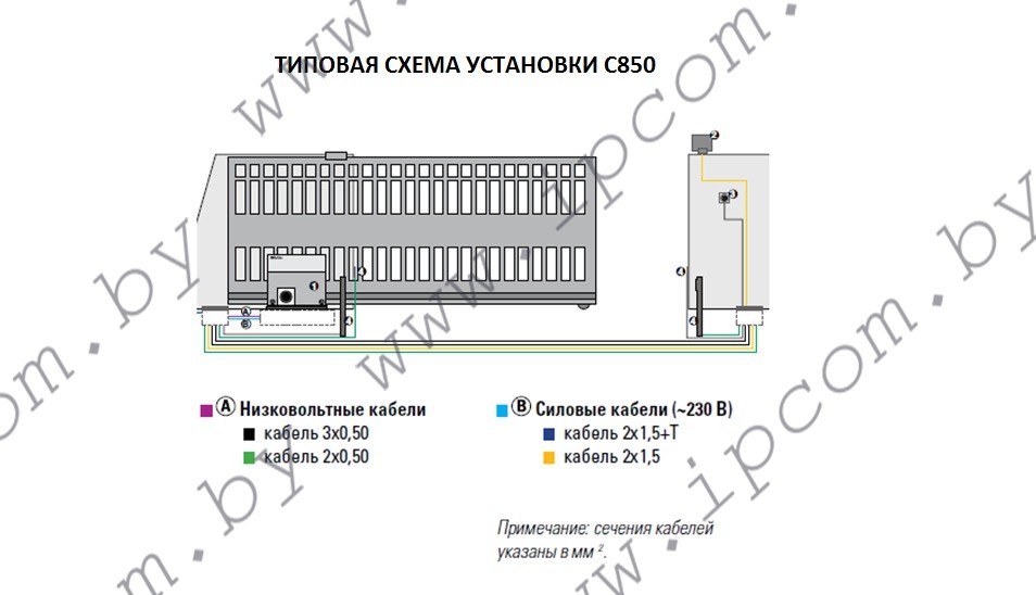Комплектация: привод, предусматривающий исполнение с зубчатой рейкой, звездочкой Z28, с платой управления E850, встроенным частотным преобразователем и концевыми выключателями.